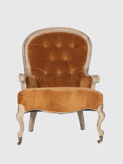 Experience unrivaled comfort and style with our Wooden Upholstered Armchair. Made of high-quality wood and luxurious Mustard Velvet, it boasts an opulent SB Natural 3 finish and a sophisticated French-inspired design. Elevate your space with this must-have piece.