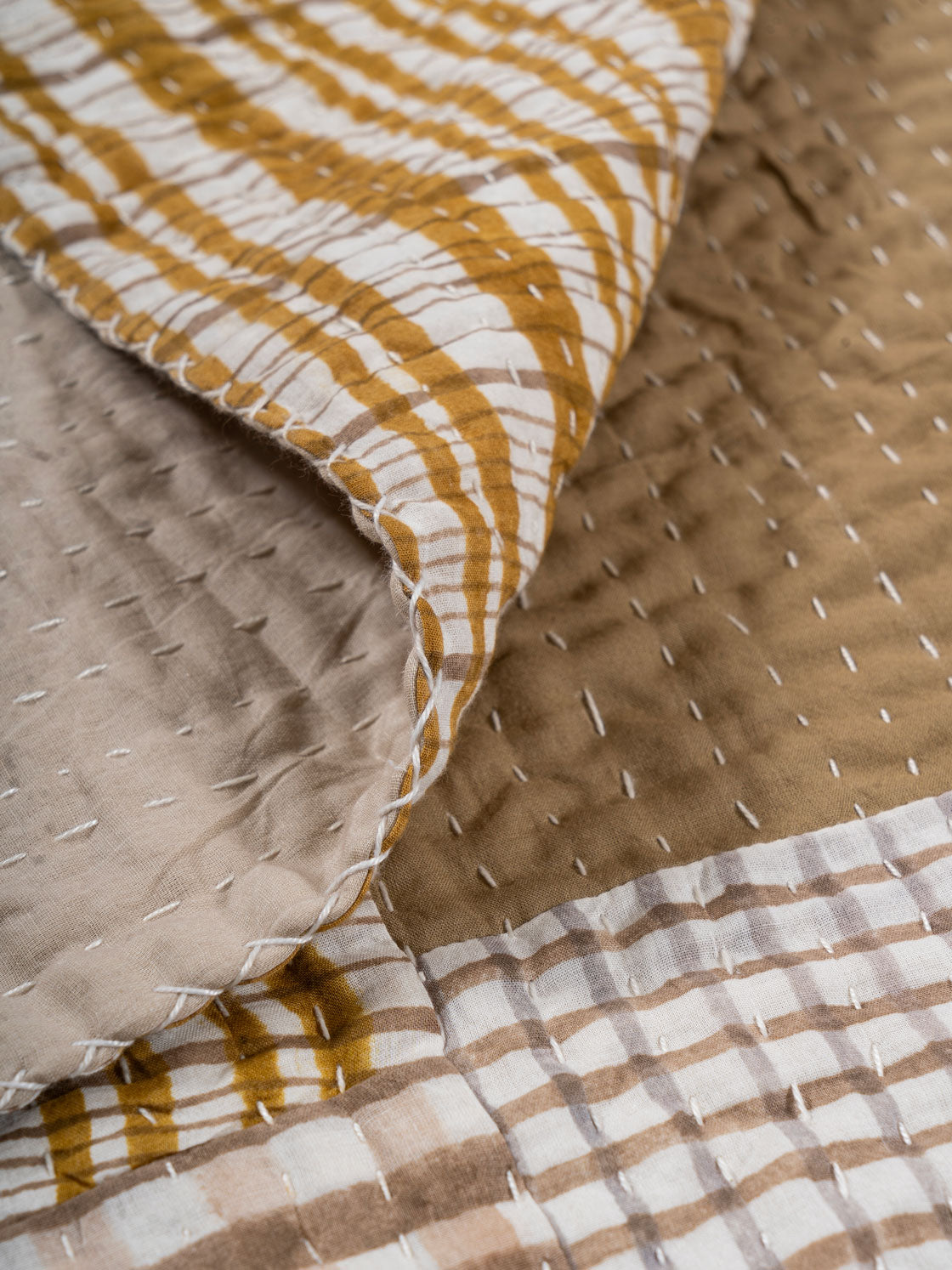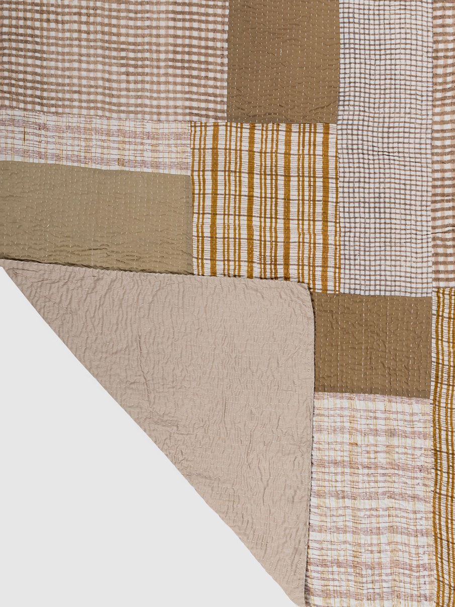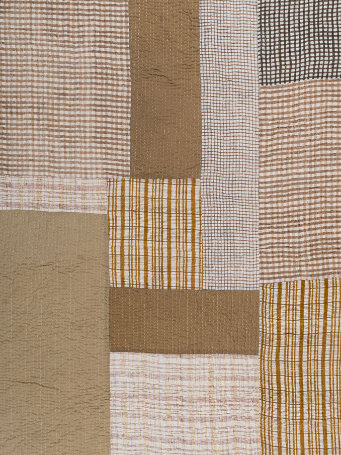 6054 | 4 Layer Printed & Solid Patch Kantha Throw With DTM Backing