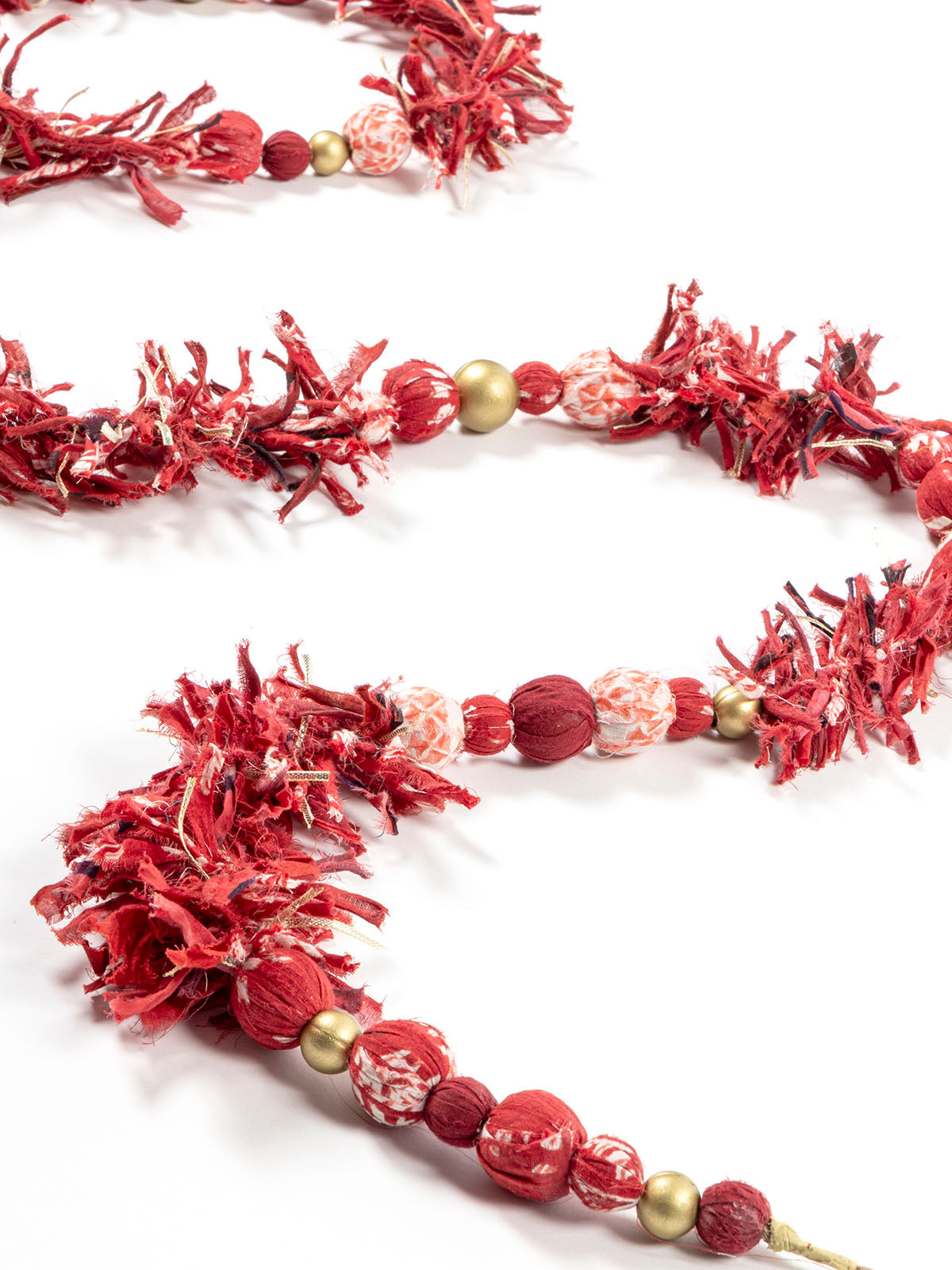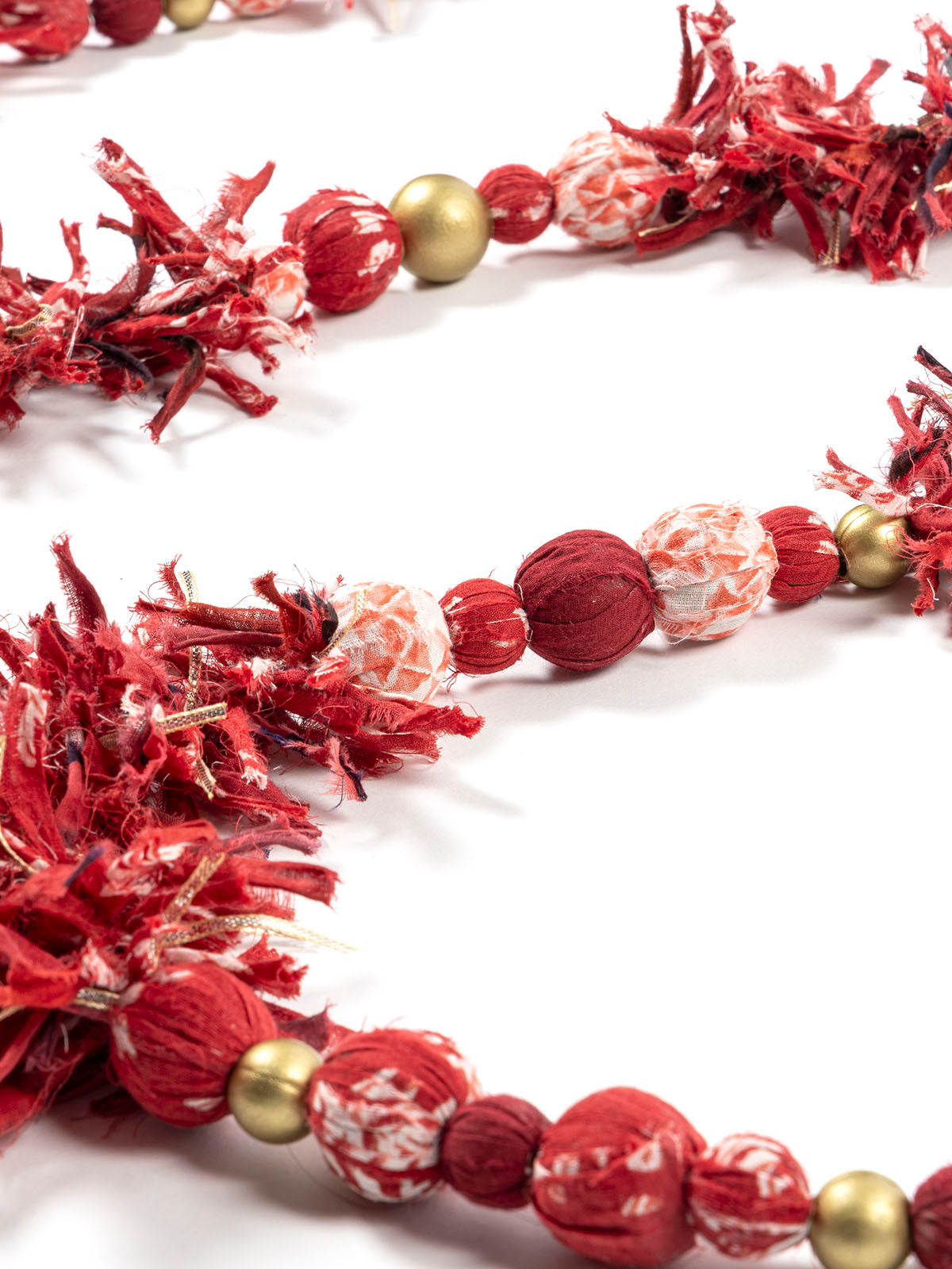 7143 | Red & White Gajra with Fabric Ball Decorative Garland